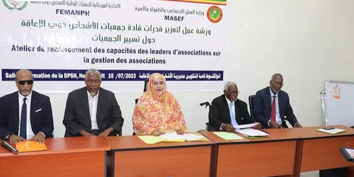 نظمت وزارة العمل الاجتماعي والطفولة والأسرة، بالتعاون مع الاتحادية الموريتانية للجمعيات الوطنية للأشخاص ذوي الإعاقة، اليوم السبت في نواكشوط ورشة عمل لتعزيز قدرات قادة جمعيات الأشخاص ذوي الإعاقة حول تسيير الجمعيات.