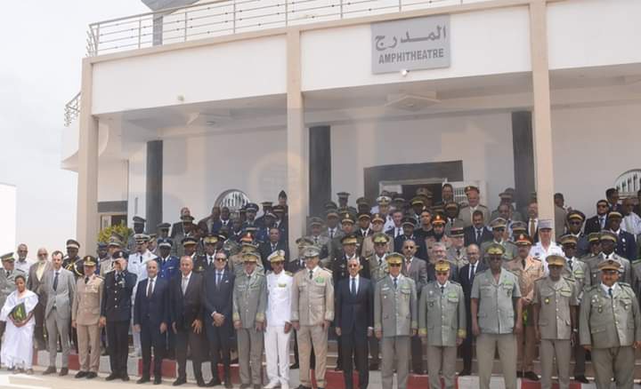 أشرف وزير الدفاع الوطني السيد حننه ولد سيدي، رفقة اللـــــواء ابراهيــم فـال ولد الشيبـاني، مدير كلية الدفاع لمجموعة الخمس في الساحل، اليوم الخميس بمقر الكلية في نواكشوط على تخرج الدفعة الخامسة من الكلية.