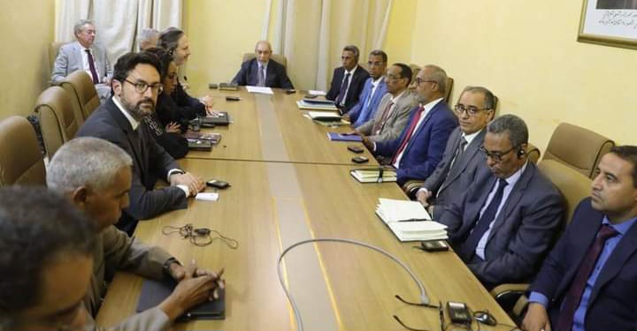 أجرى وزير العدل محمد محمود ولد عبد الله بن بيه، أمس الإثنين بقاعة الاجتماعات في وزارة العدل، لقاء مع وفد من خبراء صندوق النقد الدولي برئاسة رون سنيبليسكي، كبير المستشارين القانونيين بالصندوق.