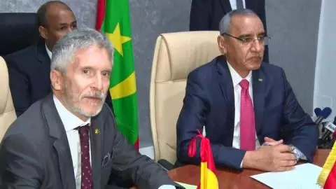 ثمن وزير الداخلية محمد أحمد ولد محمد الأمين ونظيره الإسباني فرناندو غراندي مارلاسكا ما وصفاها ب”النجاحات الكبيرة التي تحققت في مجال مكافحة الهجرة غير الشرعية والجريمة العابرة للحدود”.