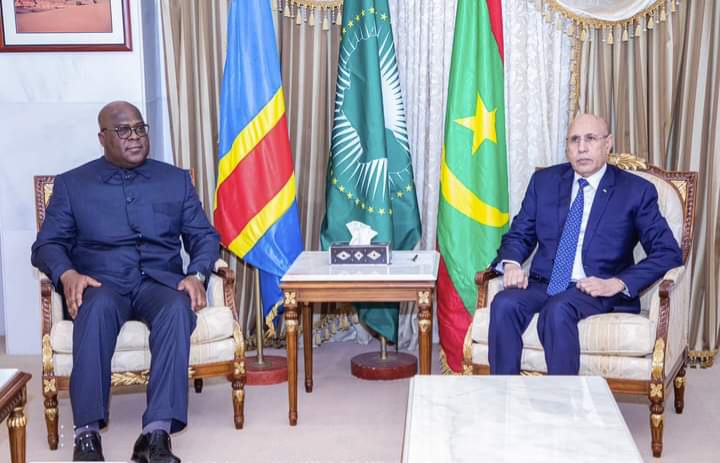 التقى رئيس الجمهورية، رئيس الاتحاد الافريقي محمد ولد الشيخ الغزواني، مساء أمس بالقصر الرئاسي، رئيس جمهورية الكونغو الديمقراطية فيليكس تشيسكيدي، الذي يؤدي زيارة صداقة وعمل لموريتانيا.
