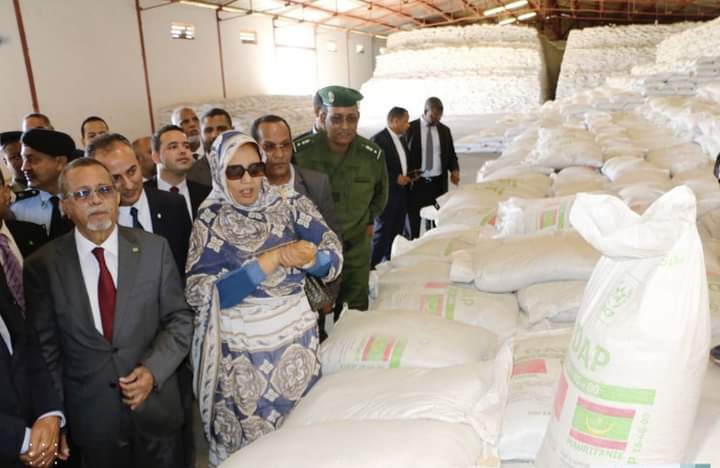 أشرف وزير الزراعة السيد يحيى ولد أحمد الوقف، اليوم في نواكشوط، رفقة مفوضة الأمن الغذائي السيدة فاطمة بنت خطري، على حفل استلام 5000 طن من الأسمدة مقدمة من المكتب الشريف للفوسفات بالمملكة المغربية.