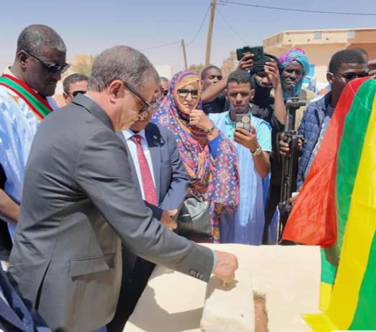 أشرف المندوب العام للتضامن الوطني ومكافحة الاقصاء حمود ولد امحمد رفقة والي أترارزة محمد ولد أحمد مولود اليوم بمدينة بوتلميت على وضع حجر الأساس لمجمع ترفيهي ورياضي وخدمي في المدينة.