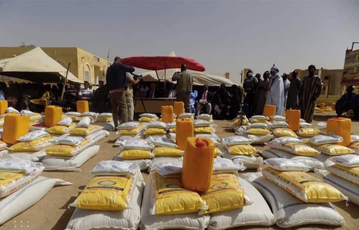 التوزيعات عبارة عن دعم يقدمه البنك الإسلامي للتنمية، مُوجهٍ للطبقات الهشة، وللمواطنين المتعففين، وقد وافقت بداية موسم الزراعة الفيضية، التي كثيرا ما تخلق واقعا صعبا لسكان المنطقة.