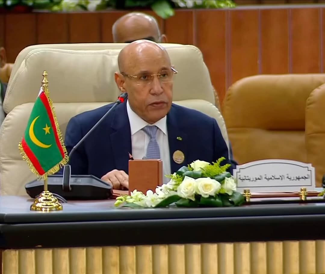 رئيس الجمهورية جدد في كلمته أثناء القمة، موقف موريتانيا الدائم من القضية الفلسطينية، مؤكدا على ضرورة العمل الموحد على إنهاء معاناة سكان قطاع غزة، وإقامة الدولة الفلسطينية المستقلة وعاصمتها القدس الشريف.
