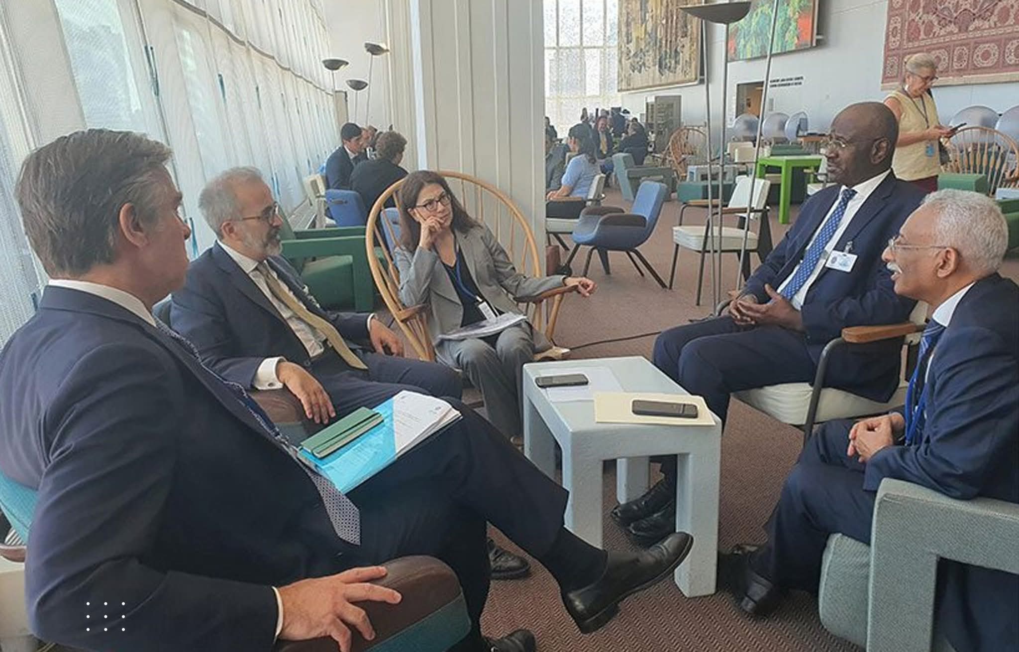 وبحث الطرفان خلال اللقاء، الذي جرى على هامش المؤتمر الدولي رفيع المستوى بنيويورك، علاقات التعاون بين البلدين وسبل تعزيزها وتطويرها والقضايا ذات الاهتمام المشترك.