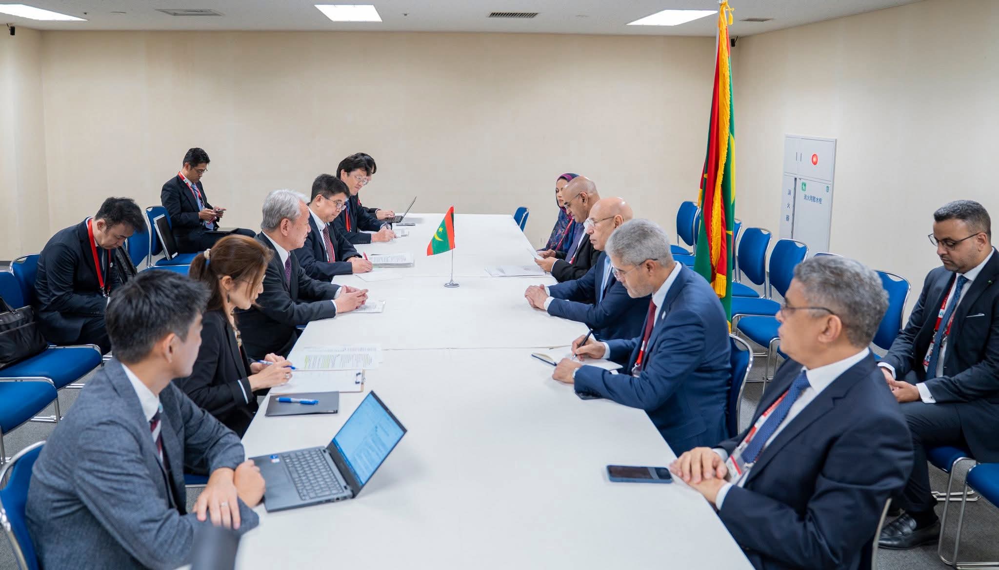 عقد رئيس الجمهورية، السيد محمد ولد الشيخ الغزواني، على هامش مشاركته في النسخة التاسعة من مؤتمر طوكيو الدولي للتنمية في إفريقيا (TICAD 9)، سلسلة لقاءات مع عدد من رؤساء ومديري كبريات الشركات اليابانية، من بينها SARAYA، HANWA KOGYO، Japan Tuna وTOYOTA TSUSHO، تم خلالها بحث سبل تعزيز الاستثمارات في القطاعات الواعدة بموريتانيا، وتطوير مجالات التعاون الفني.