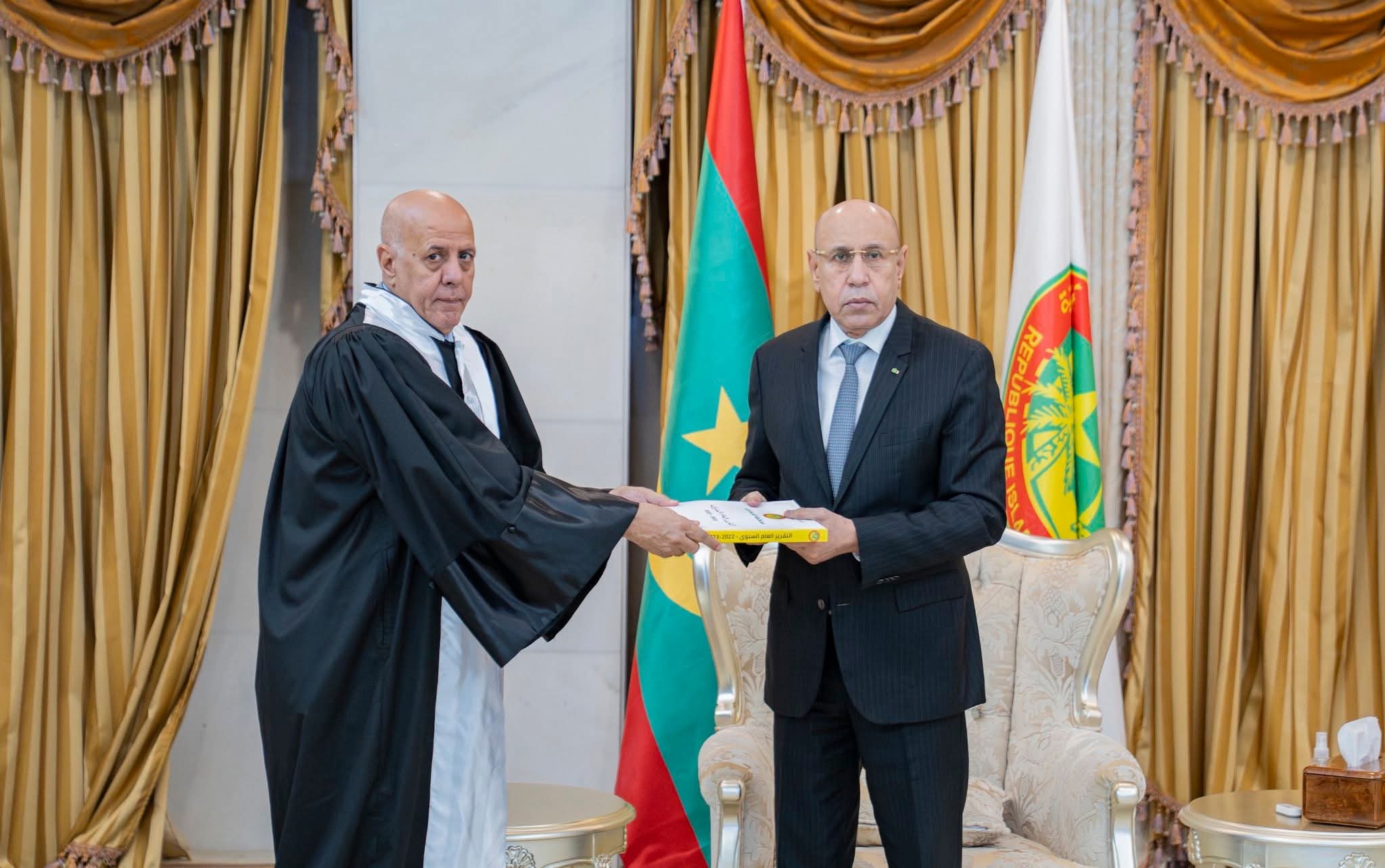 تسلم رئيس الجمهورية، السيد محمد ولد الشيخ الغزواني، صباح اليوم الأربعاء بالقصر الرئاسي في نواكشوط، التقرير السنوي العام لمحكمة الحسابات من رئيس المحكمة، السيد حميد ولد أحمد طالب.