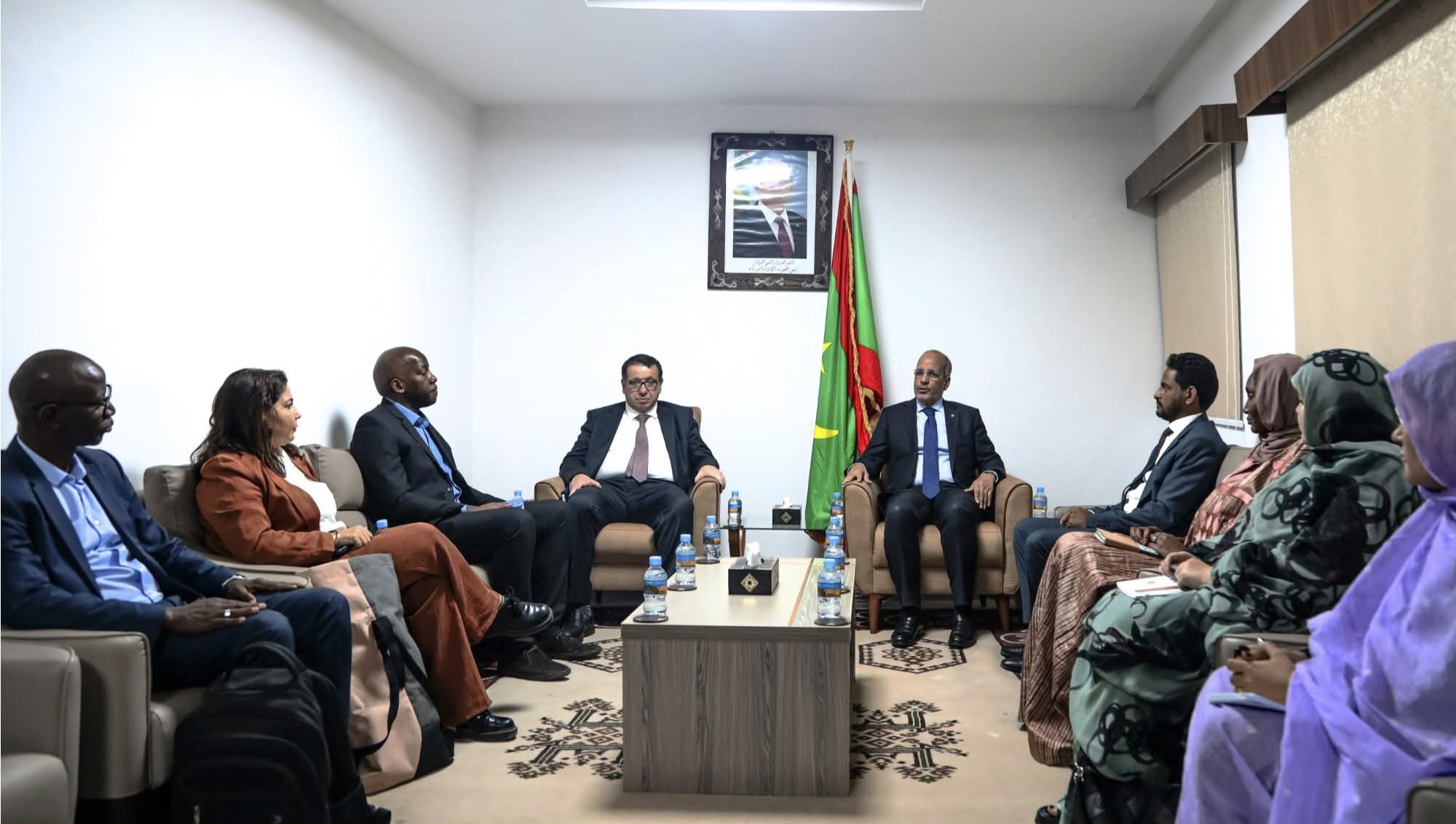 استقبل وزير التكوين المهني والصناعة التقليدية والحرف محمد ماء العينين ولد أييه بعثة من المنظمة الدولية للشغل (OIT) برئاسة المدير الإقليمي للمنظمة الدكتور حكيم حمزاوي، وعضوية غي تشامي وفالنتينا فيرزي.