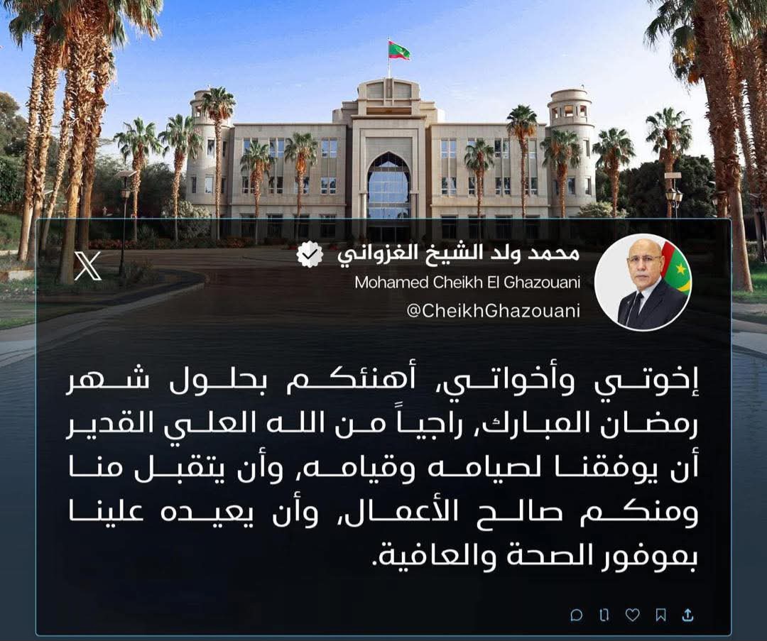 الرئيس غزواني يهنئ الشعب الموريتاني بمناسبة حلول شهر رمضان المبارك