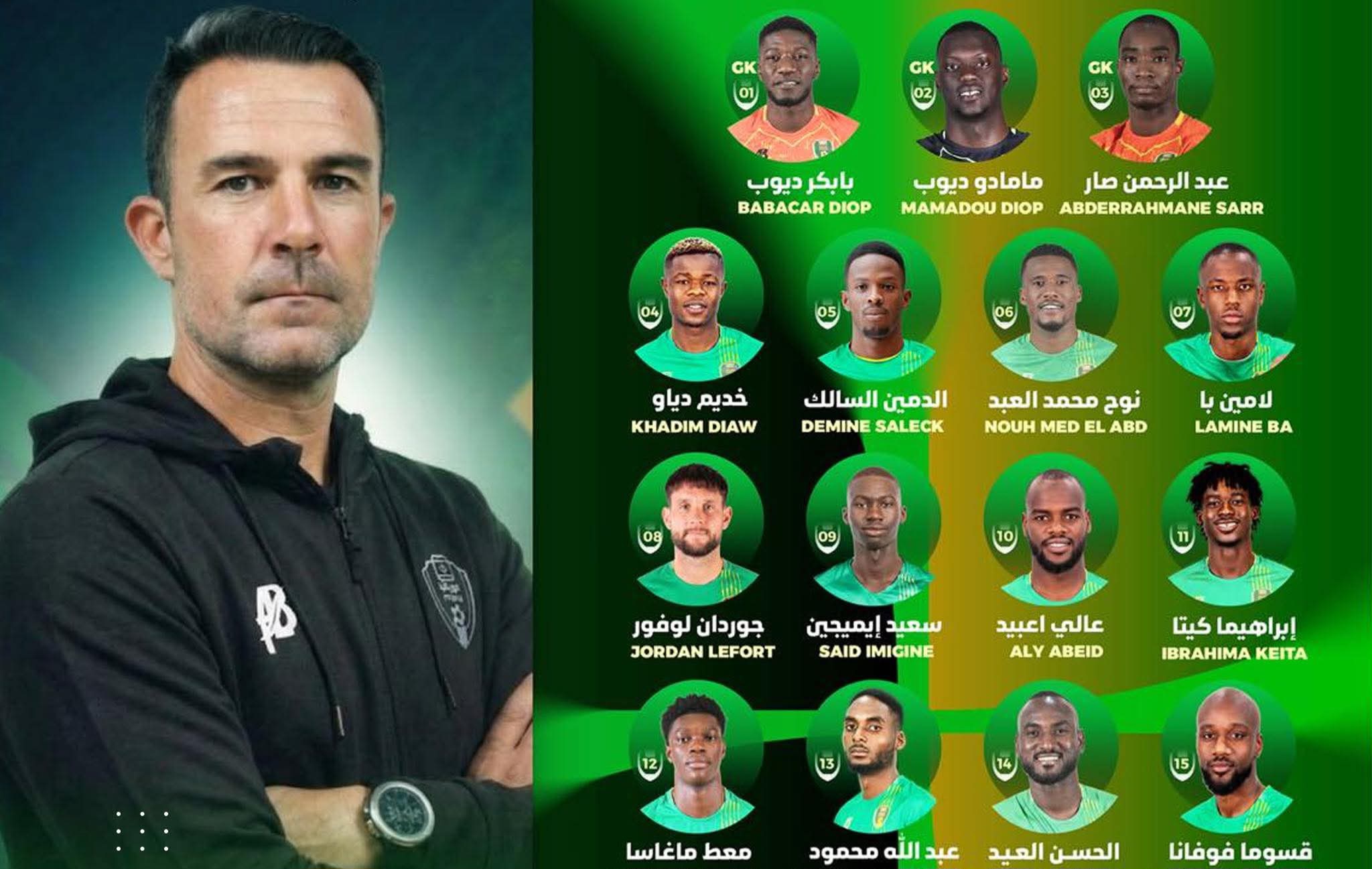 • الدفاع: لامين با، علي اعبيد، سعيد ايميجن، جوردان لوفورت، خديم دياو، نوح محمد العبد، الدمين السالك، ابراهيما كيتا.
