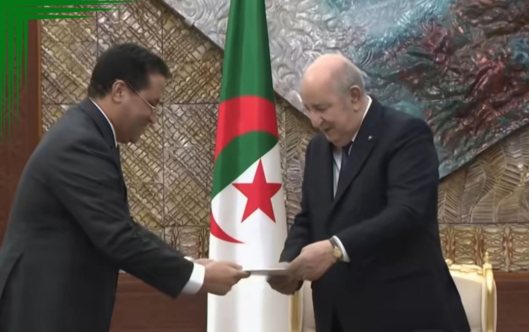 سلّم الوزير الأول المختار ولد أجاي، الرئيس الجزائري، عبد المجيد تبون، رسالة خطية من الرئيس محمد ولد الشيخ الغزواني.