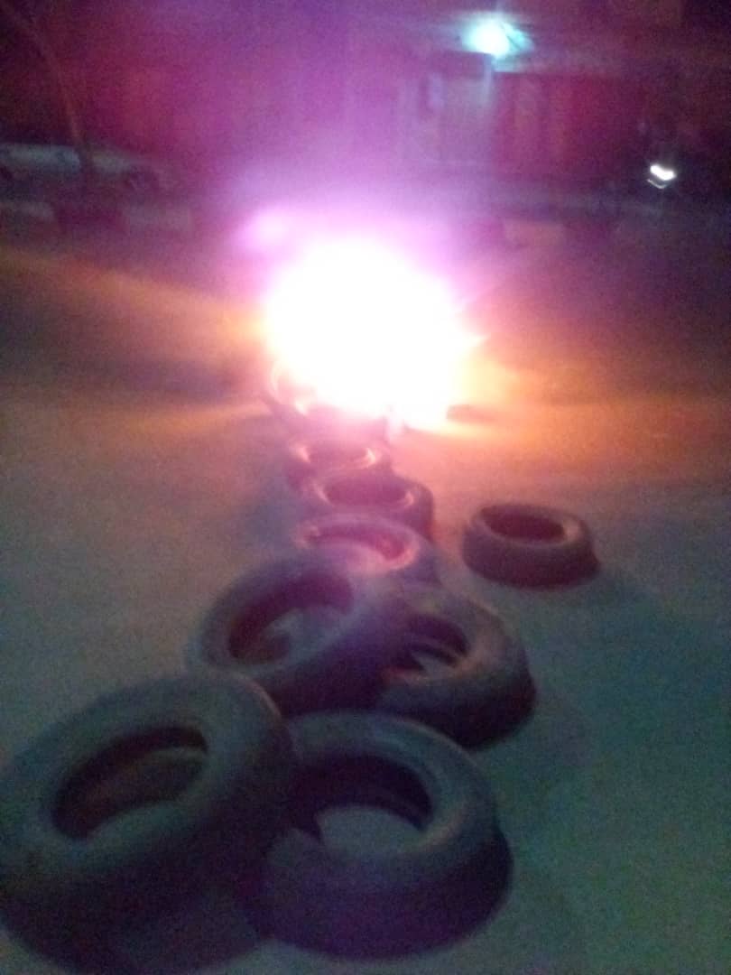احتج عدد من المواطنين الليلة أغلبهم شباب قرب ملتقى الطرق المعروف شعبيا بملتقى عزيز، وأغلقوا الطريق الرئيس، وأشعلوا النار في عجلات السيارات التالفة.