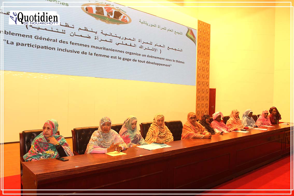 نظم التجمع العام للمرأة الموريتانية مساء اليوم بالعاصمة نواكشوط تظاهرة حاشده تحت عنوان الاشراك الفعلي للمرأة ضمان للتنمية، وعلى المستوى الرسمي حضرت لفعاليات النشاط رئيسة جهة نواكشوط السيده فاطمه بنت عبد المالك.