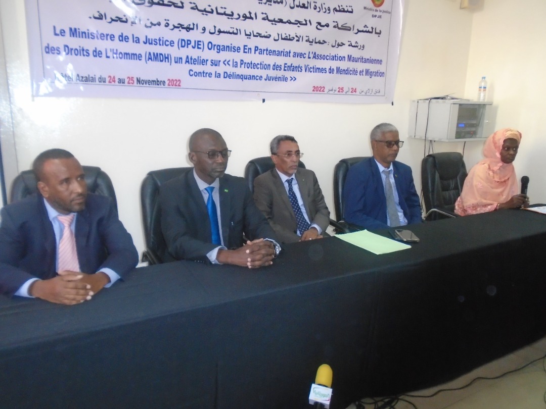 نظمت إدارة الحماية القضائية للأطفال بوزارة العدل اليوم الخميس بالتعاون مع الجمعية الموريتانية لحقوق الإنسان، ورشة حول حماية الأطفال ضحايا التسول والهجرة من الانحراف.
