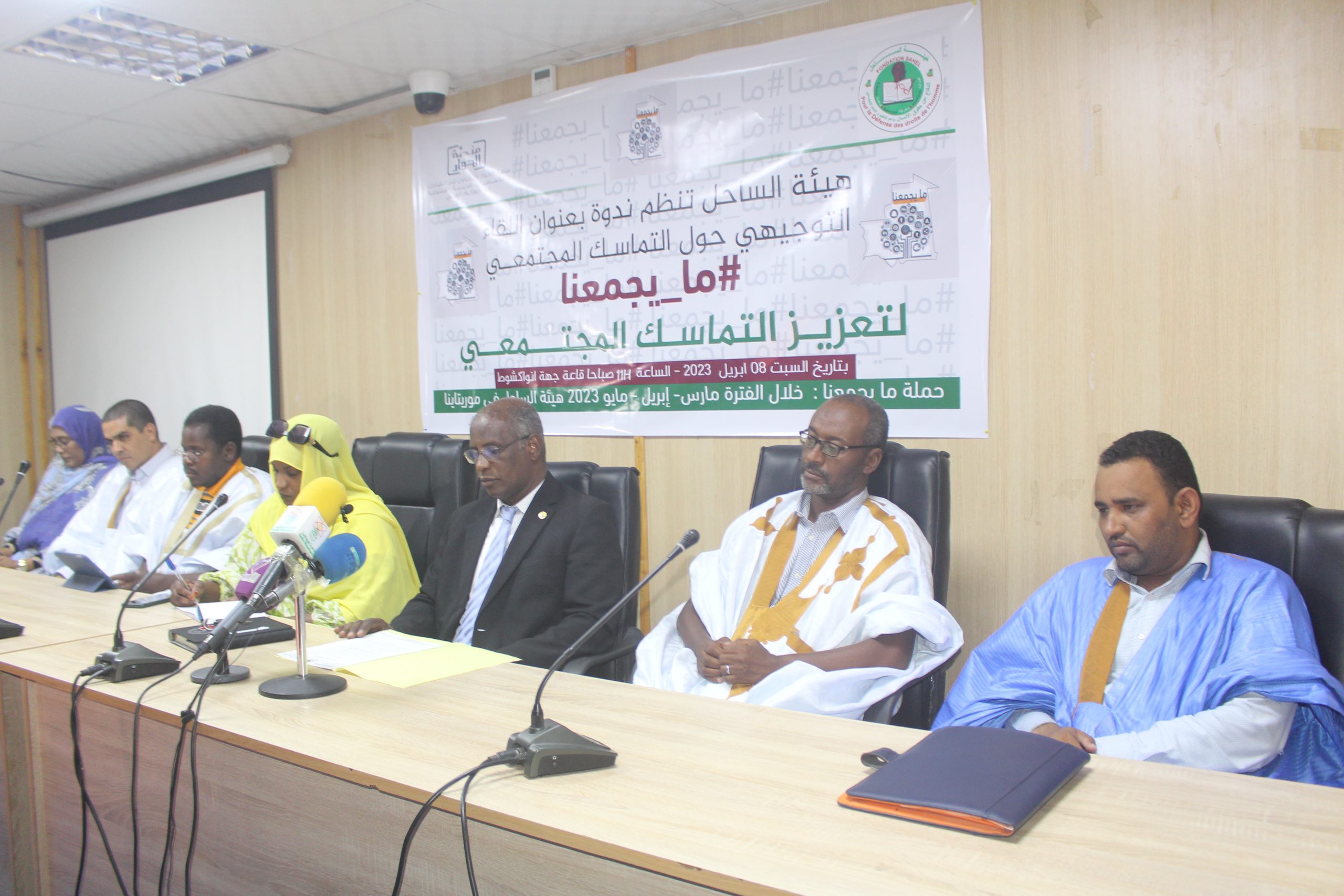 أطلقت هيئة الساحل اليوم السبت 8 أبريل 2023 بمباني قاعة جهة انواكشوط ، فعاليات حملة ألكترونية باسم ما يجمعنا لتعزيز التماسك المجتمعي ، وأكد المدير التنفيذي لحملة ما يجمعنا الأستاذ المعلوم أوبك أن حملة ما يجمعنا تسعى لتعزيز جسور التماسك المجتمعي و العيش المشترك بين المجتمع الموريتاني بواسطة شبكات التواصل الاجتماعي ، من خلال مجموعة من الأنشطة أبرزها اللقاء التوجيهي حول ما يجمعنا، ونشر مناشير وتدوينات وفيديوهات توجيهية تتضمن رسائل إيجابية على صفحات التواصل الاجتماعي تحث على التماسك المجتمعي ، مع فاعلين مجتمعيين ، كما ستنظم الحملة مؤتمر الحوار المجتمعي للتماسك ، مشيرا إلى أن حملة ما يجمعنا تأتي تماشيا مع صميم الهدف 16 من أهداف التنمية المستدامة.