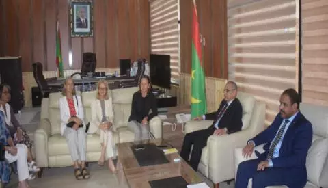 عقد وزير الداخلية محمد أحمد ولد محمد الامين، اليوم، جلسة عمل مع السفيرة الألمانية إزابيل هنين، رفقة ممثلين عن بعض المنظمات الدولية.
