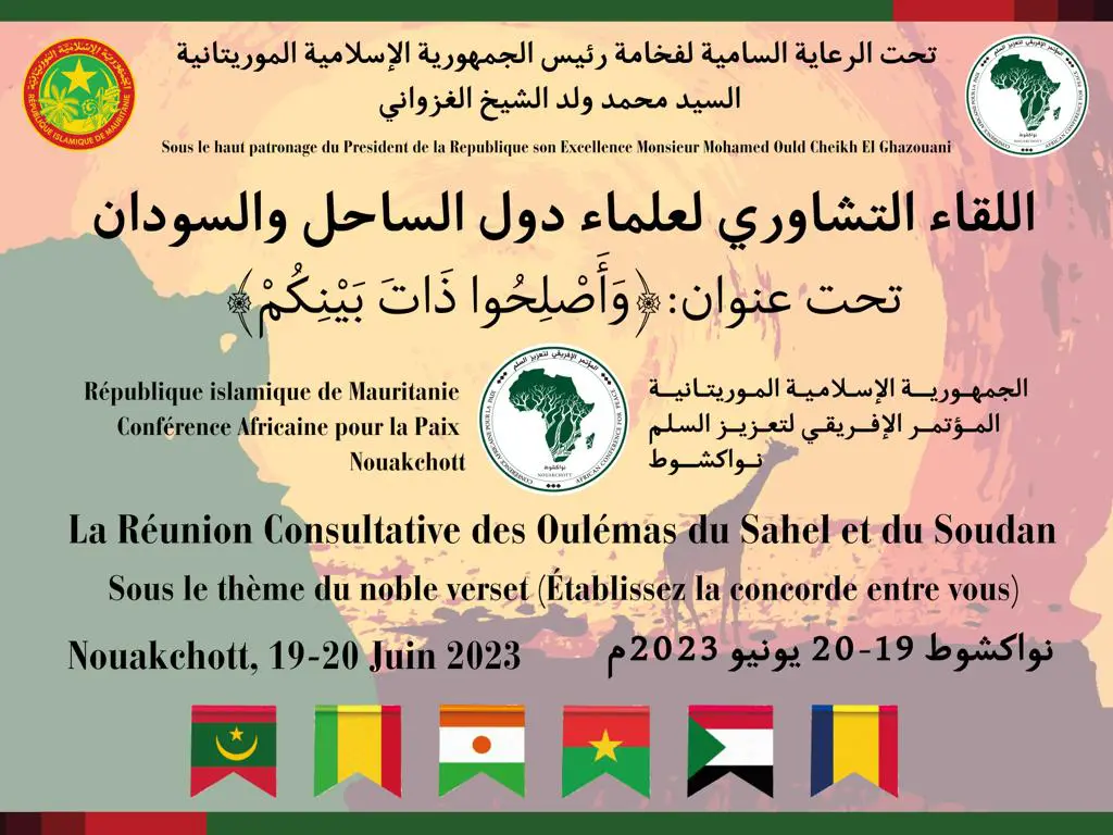 أعلن المؤتمر الإفريقي لتعزيز السلم، نيته عقد لقاء تشاوري للقادة الدينيين والتقليديين في الساحل والسودان بالعاصمة نواكشوط، تحت عنوان ﴿وأصلحوا ذات بينكم﴾، يومي 19، 20 من شهر يونيو الجاري.